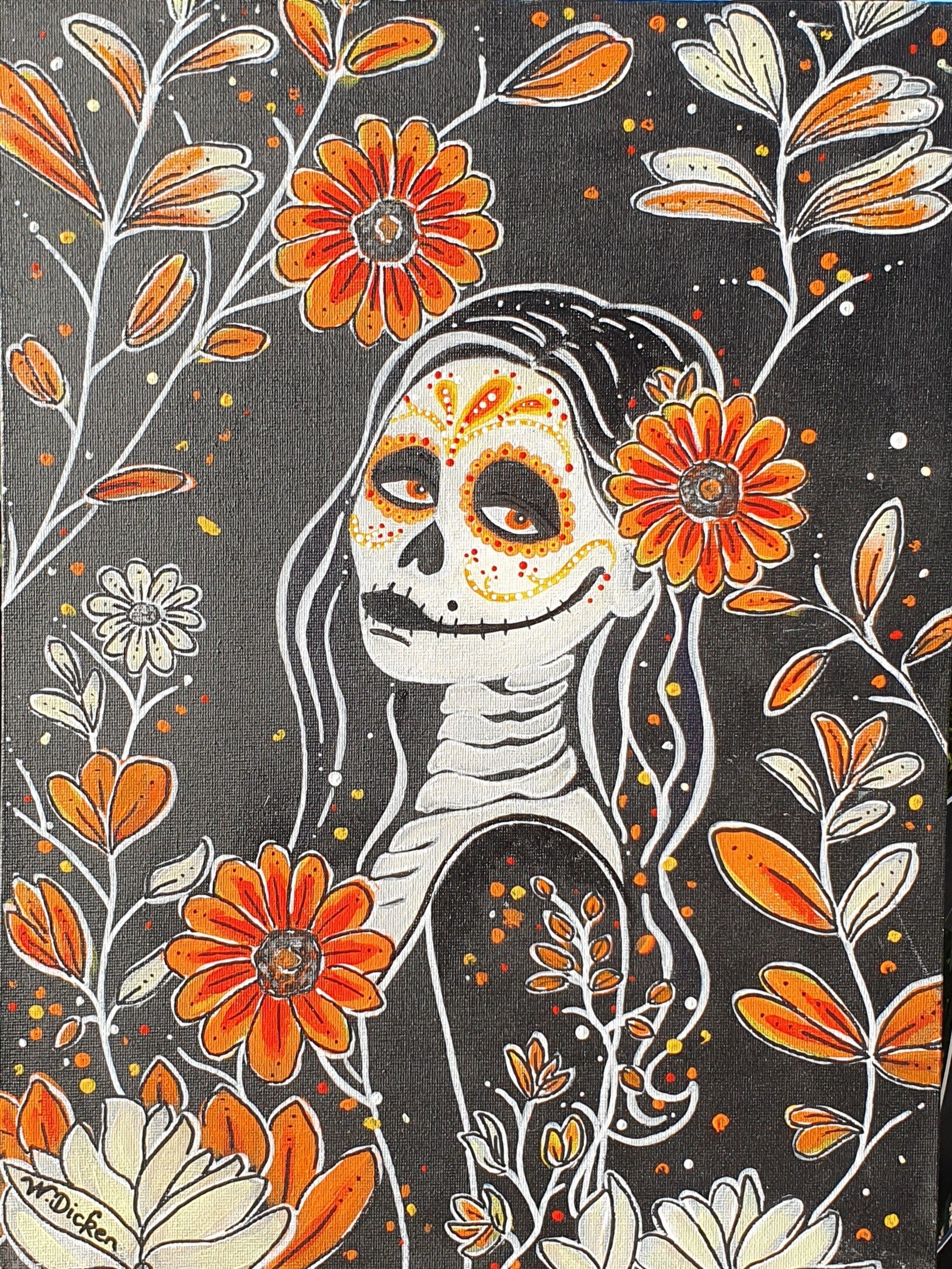 This 2024 artwork by Warrick Dicken aka MrWarricks_Creations titled ‘Day of the Dead’ has been produced using acrylic paint on stretched canvas.
